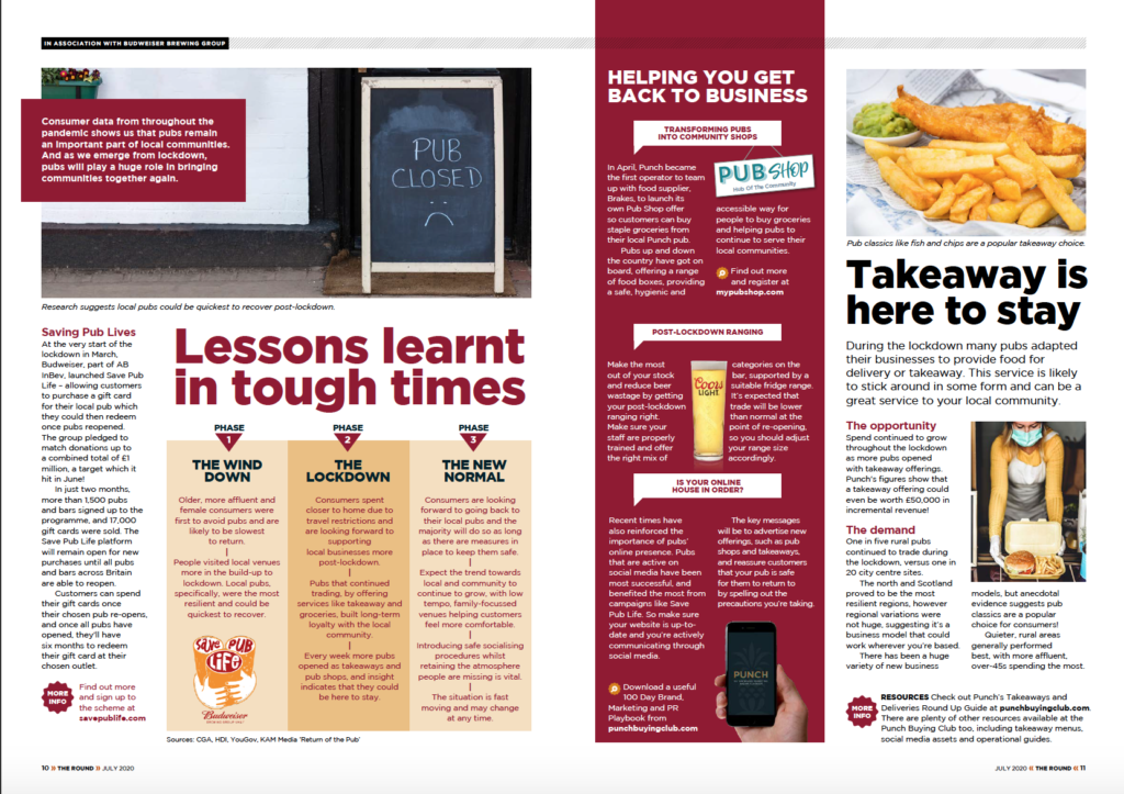 As well as supporting with day-to-day copywriting needs, I’ve edited the company’s magazine – The Round – which is sent to all Punch publicans every two months. I also stepped in to lead the marketing team on an interim basis in 2020.